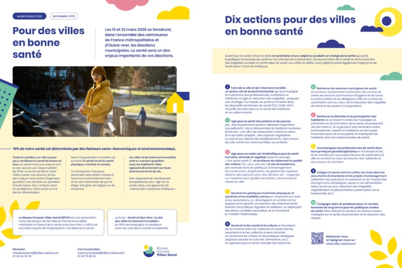 ️ Une diffusion papier est prévue début 2026 auprès des Villes-Santé, de nos financeurs et de nos partenaires. Nous comptons sur votre soutien pour nous aider à diffuser et infuser ces supports au sein de vos villes et intercommunalités, et auprès de vos acteurs locaux et partenaires.